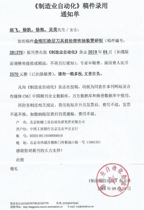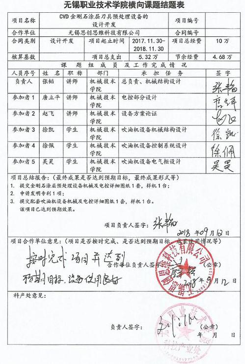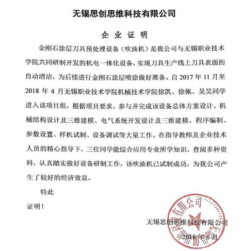 二、主要成果 吹油机研制项目来源于企业横向课题(合同金额10万元),毕业设计团队研制的吹油机通过了企业验收,横向课题顺利结题,并形成了一定的科研成果,已公开发表期刊论文一篇,已录用核心期刊论文一篇,已受理发明专利、实用新型专利各一项。 1、 企业证明