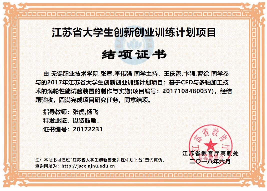 图2.江苏省大学省创新创业训练计划项目结题证书