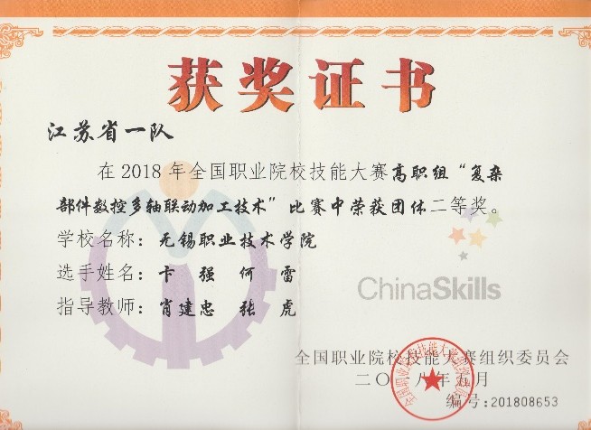 图1.参加2018年全国职业院校技能大赛获奖证书