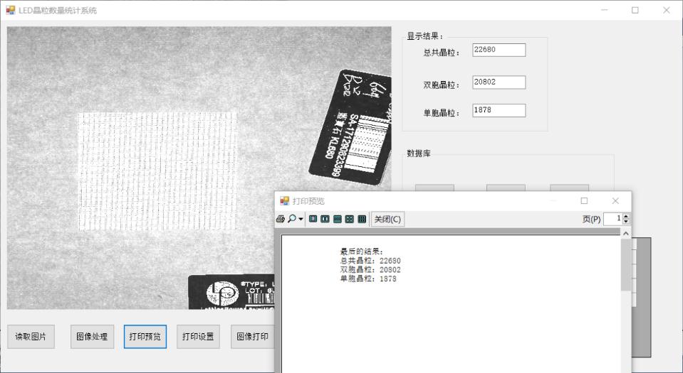 最终完成的“LED晶圆计数系统”的程序执行效果如下图所示: