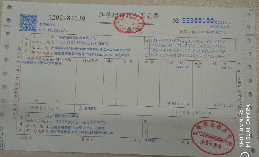 技术服务合同发票 除此之外,申请实用新型专利一项《一种用于LED计数器的可移动固定装置》;申请软件著作权两项,分别是《LED晶粒分割软件V1.0》和《基于机器视觉的智能LED晶粒数量统计系统V1.0.0》;发表省级论文一篇《基于机器视觉的智能LED晶粒数量统计系统》(计算机产品与流通,2019年4月)。