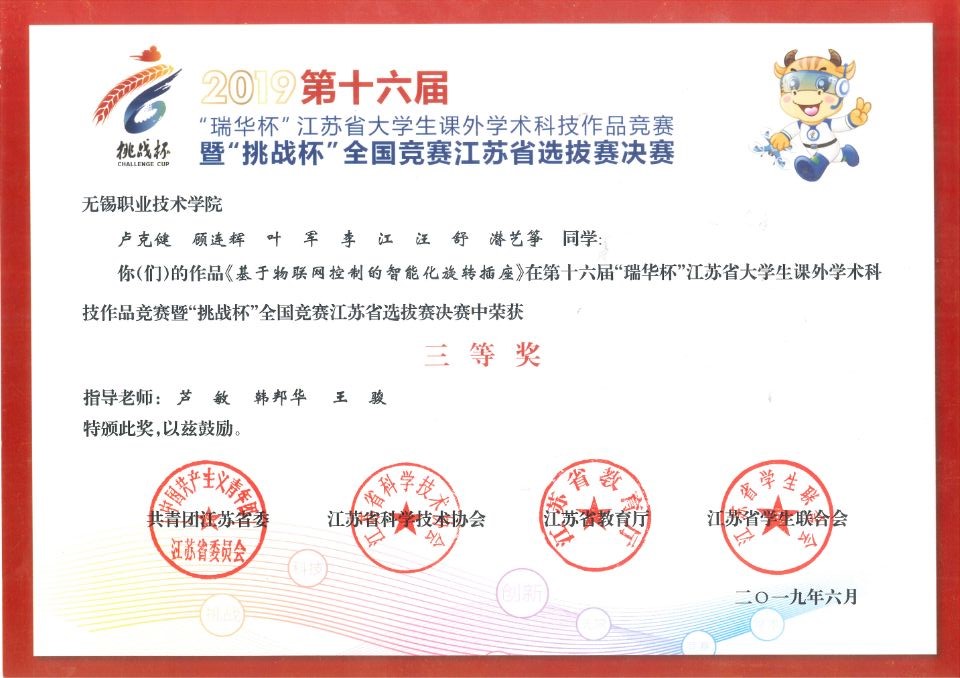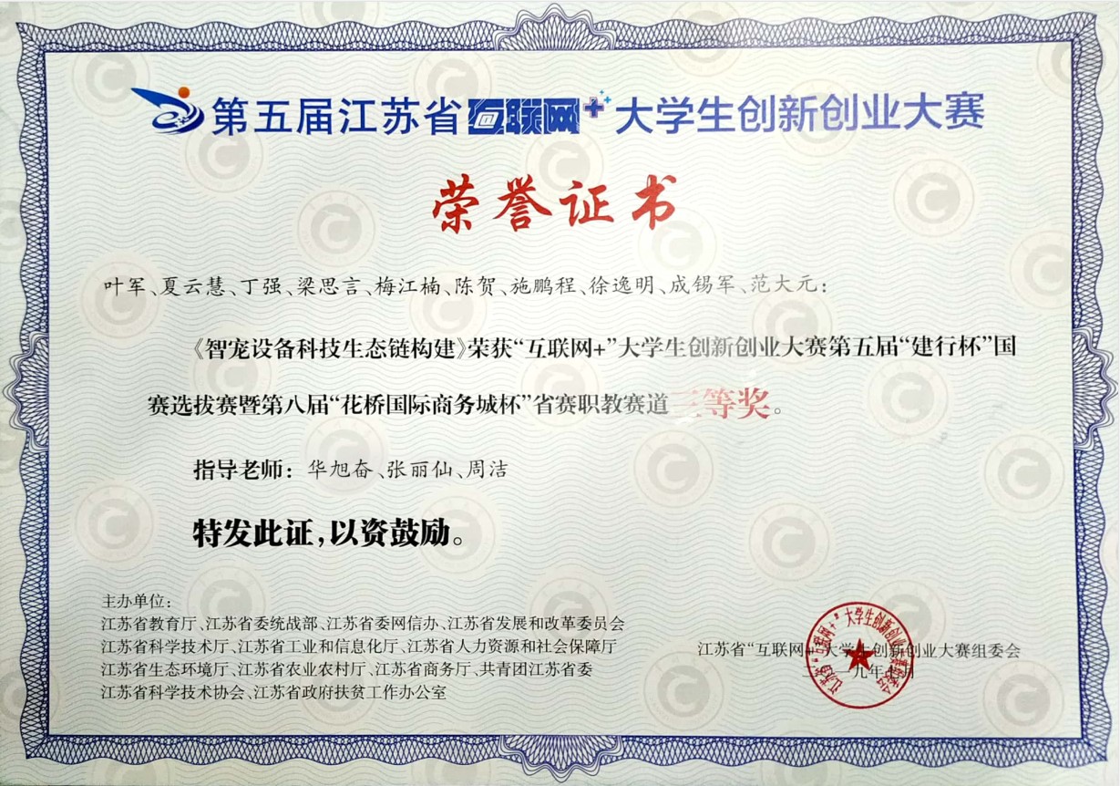 2、江苏省第五届“互联网+”大学生创新创业大赛获奖证书