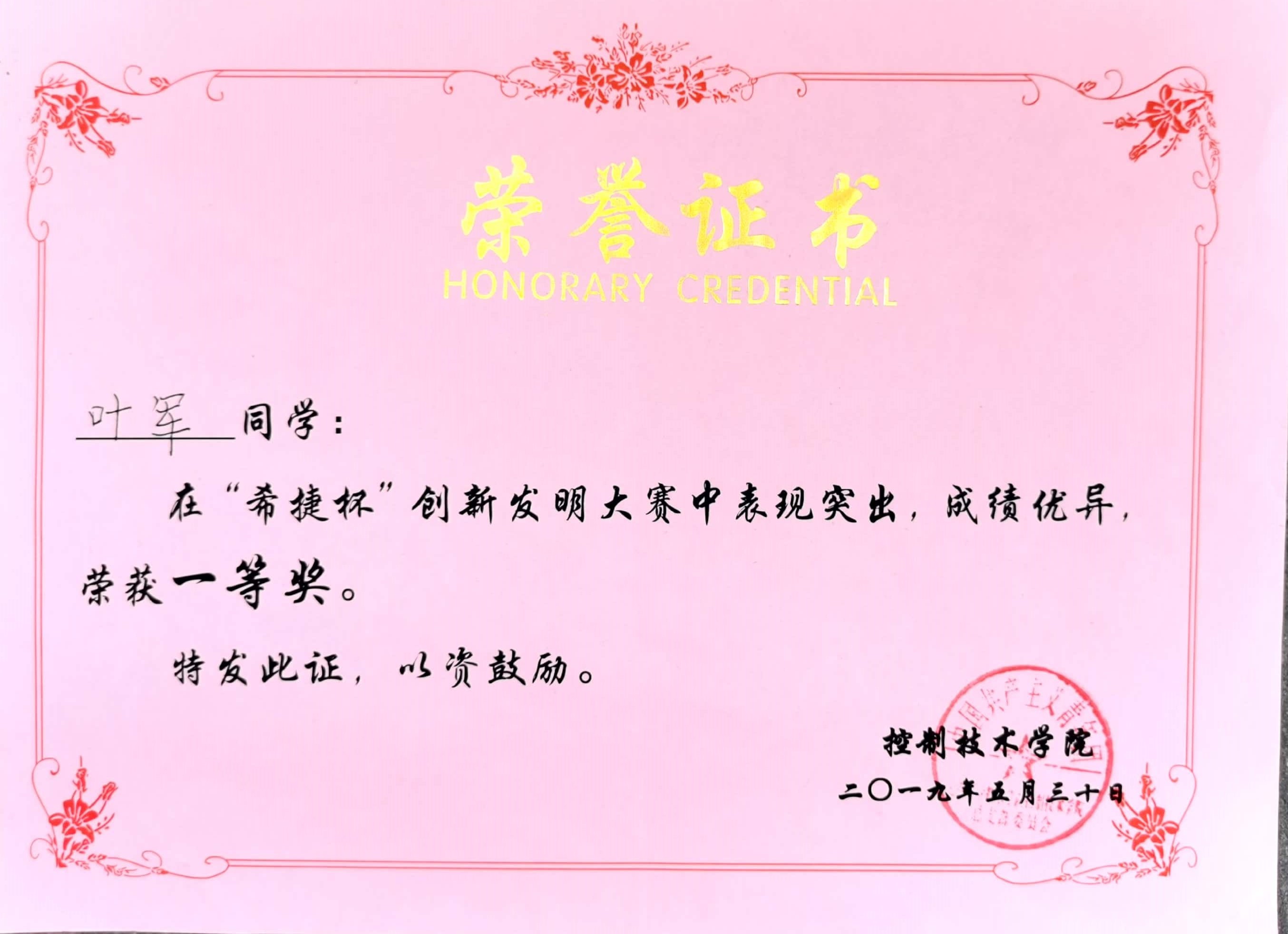 叶军,男,1999年3月出生,玛雅吧 电气自动化2017级学生。在校期间加入了教师横向课题《宠物管理系统设计与APP研发》项目,独立开发控制系统。无锡市三好学生;在江苏省高校第十五届大学生物理及实验科技作品创新竞赛获省三等奖;江苏省第五届“互联网+”大学生创新创业大赛中获省三等奖;第十五届“挑战杯”全国大学生课外学术科技作品竞赛获省三等奖;希捷杯创意大赛获一等奖;同时作为第一发明人申获实用新型专利四项;以第一作者发表论文一篇。