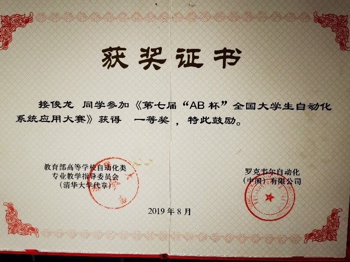 二、主要成果 1、第七届全国大学生自动化应用大赛一等奖