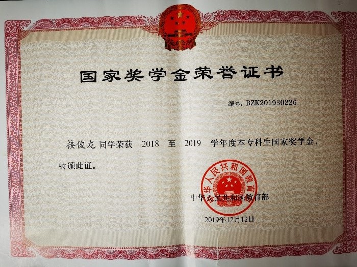一、学生及指导教师简介 1、学生-接俊龙 接俊龙,男,1999年2月出生,玛雅吧 工业过程自动化技术专业2017级学生。在校期间加入了《基于机器视觉的Delta机器人分拣控制系统设计与开发》创新项目,学习机器视觉与Delta机器人控制技术一年,可独立完成视觉部分与Delta机器人的编程,实现机器人的精确抓取。参加高等数学竞赛培训,获得高等数学竞赛省级一等奖荣誉。参加自动化应用系统培训,获得第七届全国大学生自动化应用大赛一等奖荣誉。三年来成绩一直位于专业前列,多次获得校优秀奖学金和校三好学生,并于2019年获国家奖学金。