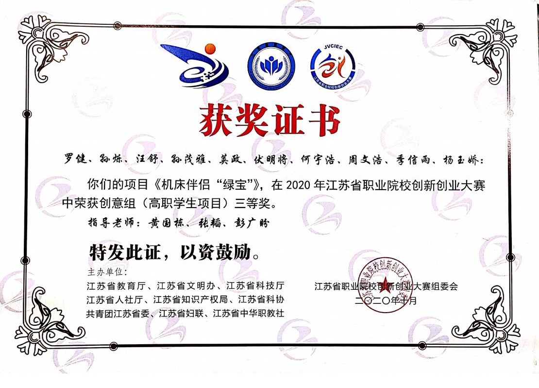 3、 获江苏省职业院校创新创业大赛三等奖。