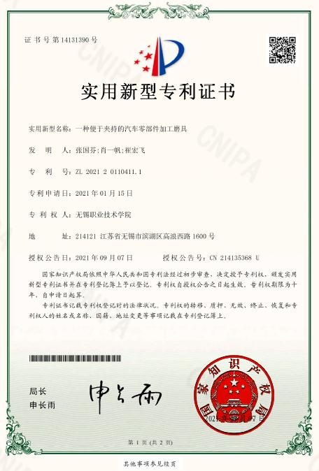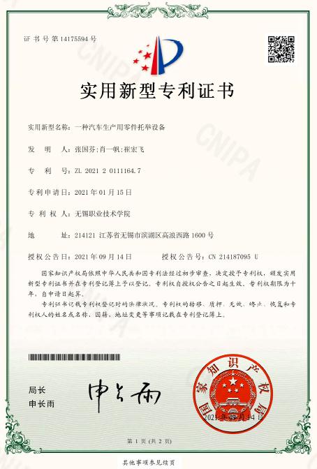 图1.2全国数字化创新设计大赛江苏赛区一等奖 2.在《汽车实用技术》《汽车零部件》杂志2021年共发表论文3篇。