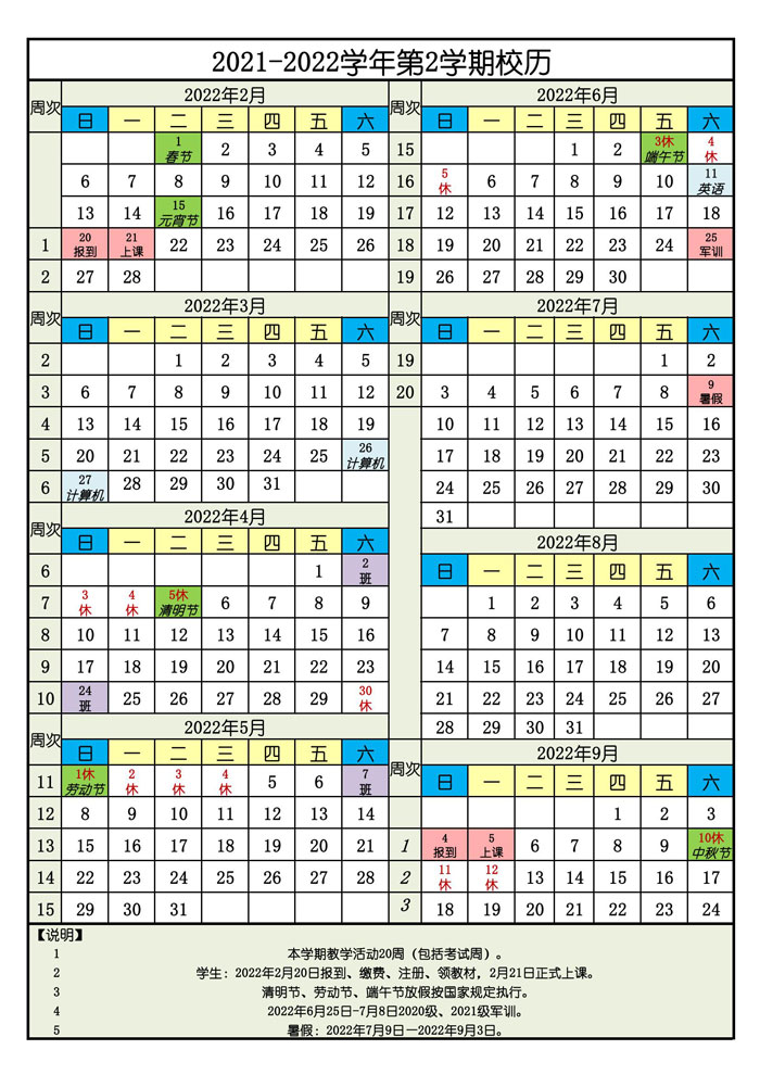 2021-2022-2学期校历