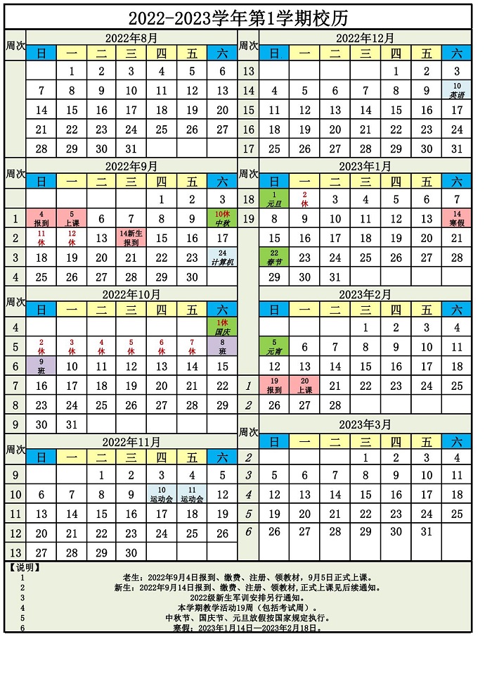 2022-2023-1学期校历