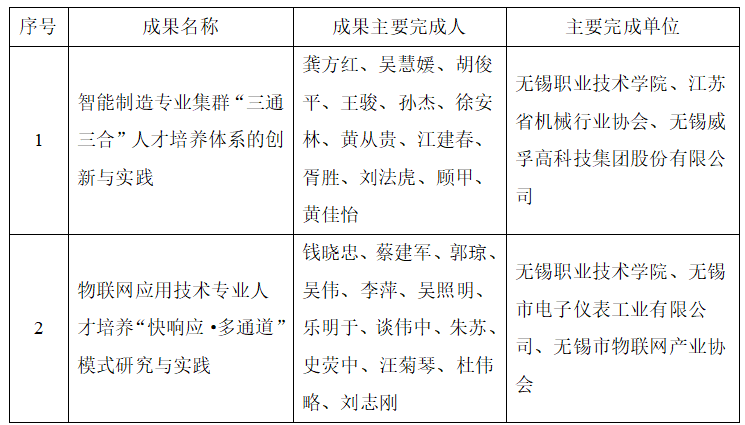各部门: 根据《教育部关于开展2022年国家级教学成果奖评审工作的通知》(教师函[2022]9号)和《省教育厅关于做好2022年职业教育国家级教学成果奖申报推荐工作的通知》(苏教职函〔2022〕37号),我校拟向省教育厅推荐2个项目申报2022年国家教学成果奖(职业教育类),现予公示。