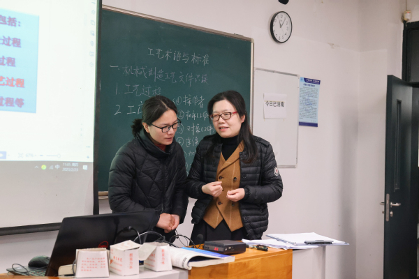 副校长吴慧媛与机械技术学院赵燕老师课间交流