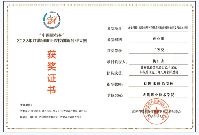 7.2在“中国银行杯”2022年江苏省职业院校创新创业大赛获省赛一等奖