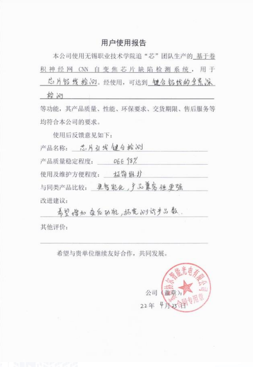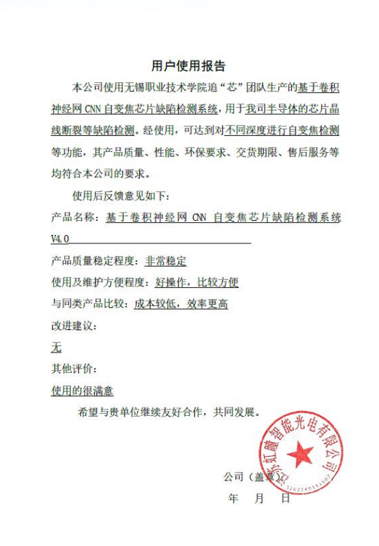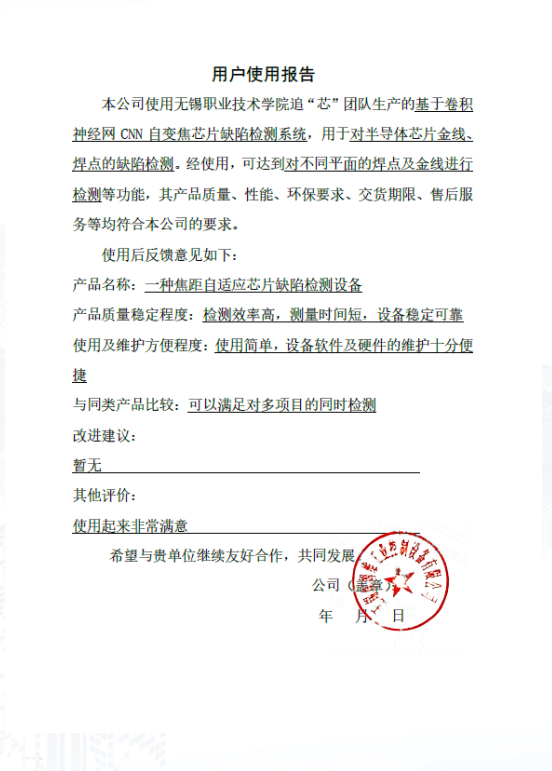 2.企业应用证明 2.1无锡埃姆维工业控制设备有限公司用户使用报告