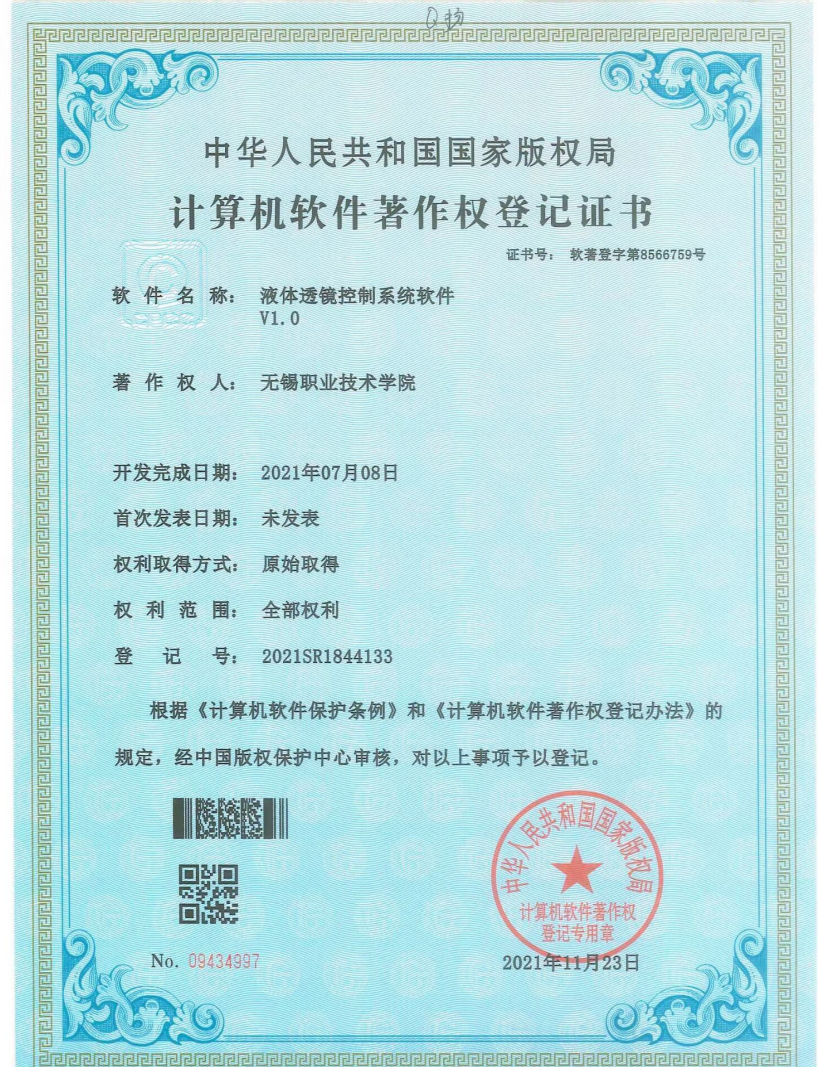 5.3软件著作权 5.3.1液态透镜控制系统软件