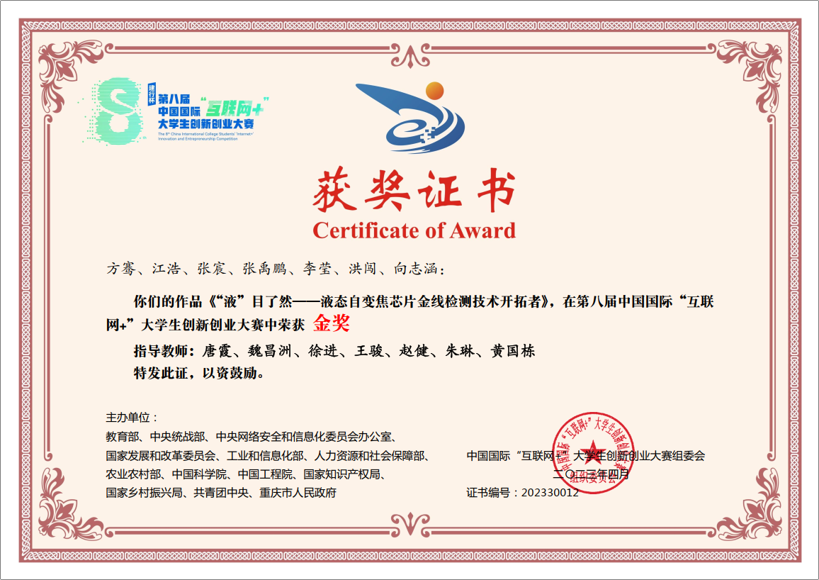 7.竞赛获奖 7.1在第八届中国国际“互联网+”大学生创新创业大赛中获国赛金奖