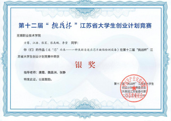 7.3在第十二届“挑战杯”江苏省大学生创业计划竞赛获省赛二等奖
