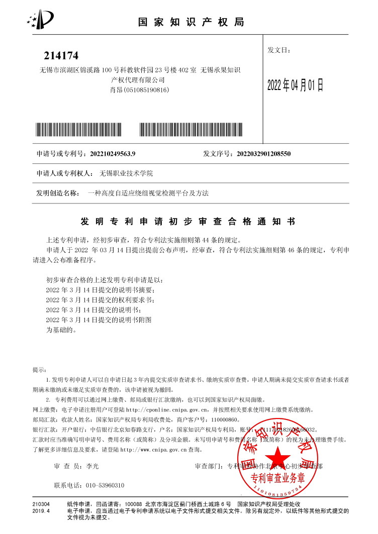 5.2在审发明专利2项 5.2.1一种高度自适应绕组视觉检测平台及方法