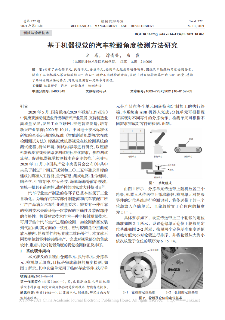 6.期刊论文 6.1第一作者发表论文2篇 6.1.1《基于机器视觉的汽车轮毂角度检测方法研究》
