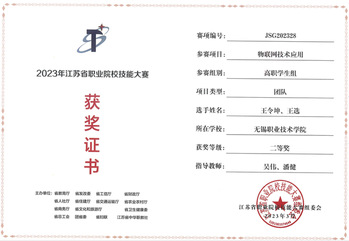(2)2023年江苏省职业院校物联网技术应用赛项二等奖,2023.3