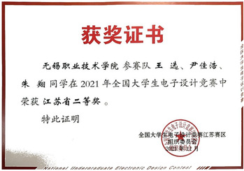 3.学生获奖情况 (1)2021年全国大学生电子设计竞赛江苏省二等奖,2021.11