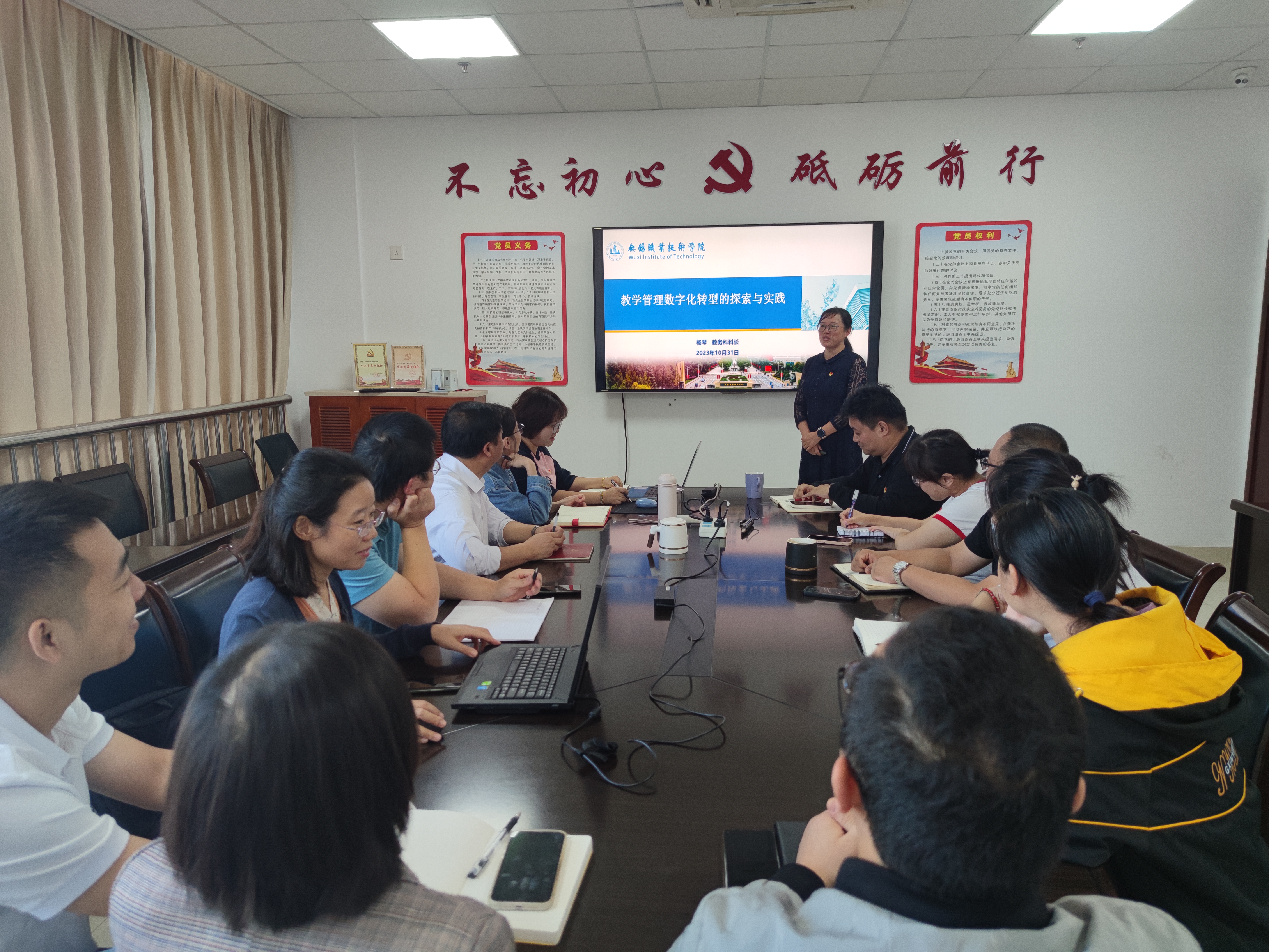 为稳步推动党建工作向标准化规范化发展,筑牢初心使命,增强做好教学服务工作的责任感使命感、激发干事创业的热情,凝心聚力,以更加饱满的精神状态谱写部门工作高质量新篇章,教务处党支部探索党建业务融合新载体,实施党建工作“月月谈”微讲堂,先科长后科员,每月一期微课堂切实做好党务业务协同发展。 2023年10月31日上午,由教务处党支部组织委员、教务科科长杨琴同志围绕教学管理数字化转型这一主题,在厚德楼902开启微课堂第一期。她主要从教学管理数字化转型的相关背景、总体设计、主要措施、实施成效、思考展望五个方面结合我校教学管理数字化转型的探索与实践。在讲授过程中针对提及的关键点适时研讨。氛围轻松、愉悦,各科室、各岗位工作在研讨过程中增进了解,进一步加强了部门的凝聚力。 讲堂结束后,教务处党支部书记、教务处处长胡俊平同志对后期的微课堂做了进一步安排,要求:教务处每个成员要提炼工作中的好经验好做法,指出工作中存在的问题难点,交流下一步工作打算。通过相互学习、相互借鉴、相互提升,达到补短板固底板、传经验扬优势的效果。 (撰稿:杨琴摄影:马忠亮审核:胡俊平)