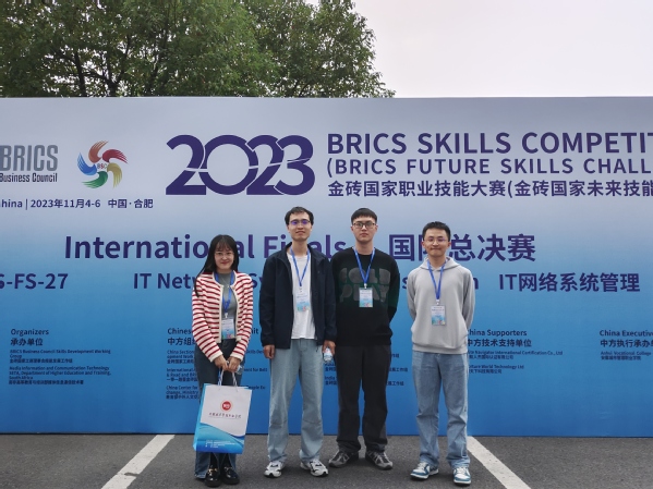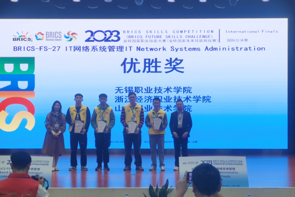 11月4日至6日,2023年金砖国家职业技能大赛IT网络系统管理赛项国际总决赛在合肥举行。我校代表队由指导老师物联网技术学院谢文芮、周玉乾和学生贾宇盟、石昌泽组成,经过同各国51支代表队的激烈角逐,最终总分排名第4,荣获一等奖。 为继续落实金砖国家《厦门宣言》《约翰内斯堡宣言》《巴西利亚宣言》《莫斯科宣言》《新德里宣言》和《北京宣言》中关于技能发展工作的相关精神,贯彻执行习近平主席在金砖国家领导人第十三次会晤上关于“举办职业技能大赛,为五国职业院校和企业搭建交流合作平台”的倡议,由南非高等教育与培训部、金砖国家工商理事会、南非豪登省政府共同主办本届金砖国家职业技能大赛。IT网络系统管理赛项共有中国、印度等金砖国家51支代表队同台竞技,竞赛包括A、B、C、D四大模块,其中模块A为网络布线与设备配置,模块B为云网络搭建与运维,模块C主要考查选手操作系统网络服务配置能力,模块D则对选手在网络安全管理方面的能力进行考查。IT网络系统管理赛项通过四大模块的训练,全面考查参赛队计划组织和团队协作等综合职业素养、创新能力和实践能力。 我校代表队6月大赛报名,9月上旬参加联合区域选拔赛荣获第5名,再到中国合肥参加国际总决赛赛荣获一等奖,我校参赛师生克服了备赛时间短、竞赛内容多等困难。物联网学院计算机系主任肖颖对备赛和参赛过程进行了全程指导,最终通过大家的努力在金砖大赛IT网络系统管理赛项上取得了优异的成绩。 (物联网学院 撰稿/摄影:周玉乾;审核:谢欢)