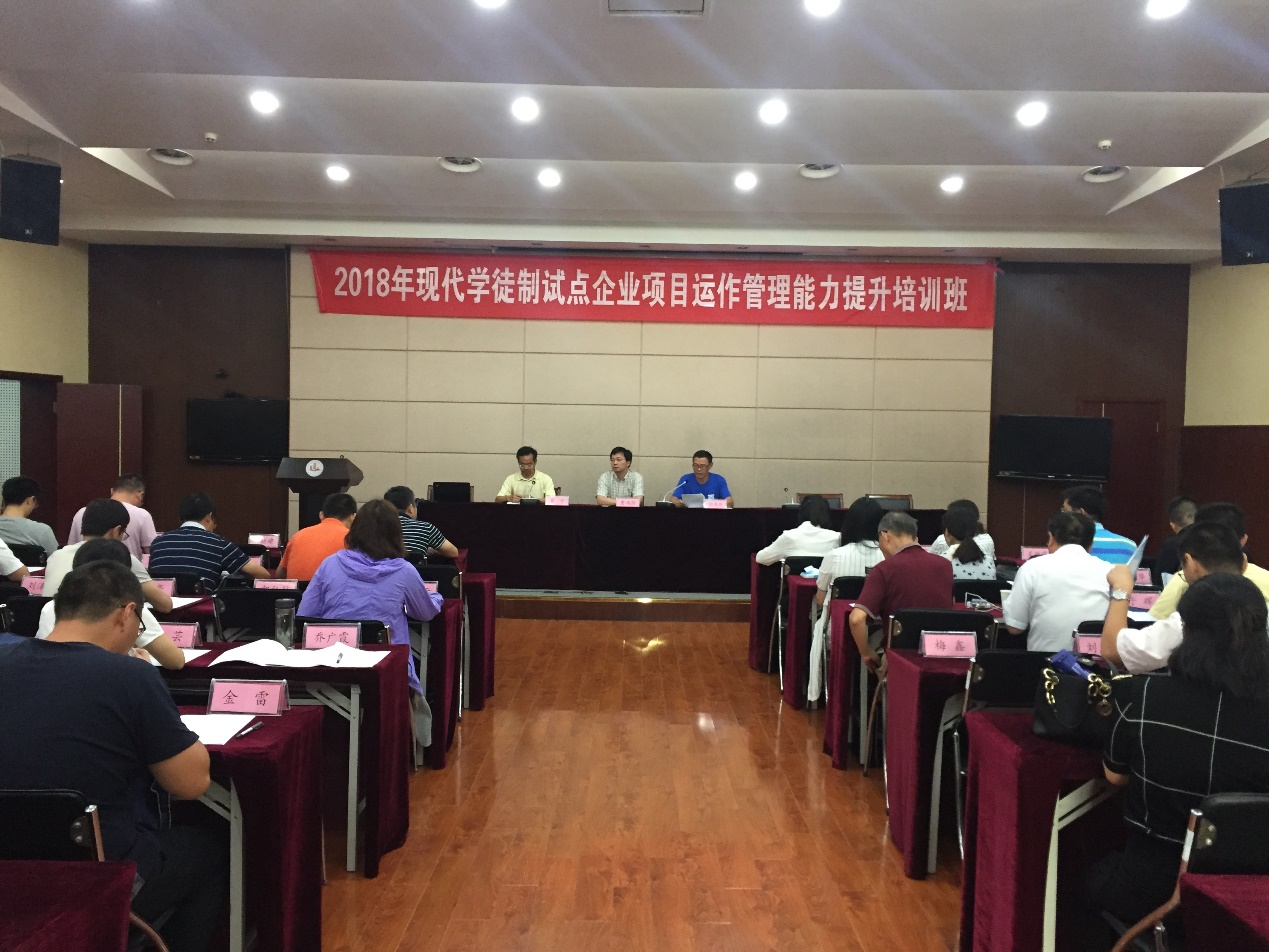 2018年7月23日上午,2018年职业教育现代学徒制试点企业项目运作管理(合作企业项目负责人)能力提升培训班在我校开班。江苏省师培中心办公室曹鸿骅主任、我校继续教育学院崔平院长、我校汽车与交通学院郭再泉书记和参加培训的42名现代学徒制合作企业项目负责人参加了开班仪式。