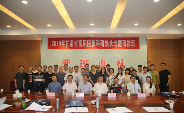 7月1日上午,2019年甘肃省职业院校教师素质提高计划高职高专院校科研处长专题研修班在我校综合楼F201会议室开班。我校党委书记朱爱胜,继续教育学院、体育部等相关负责人和来自甘肃省各高职院校的28名科研处负责同志参加了开班典礼。