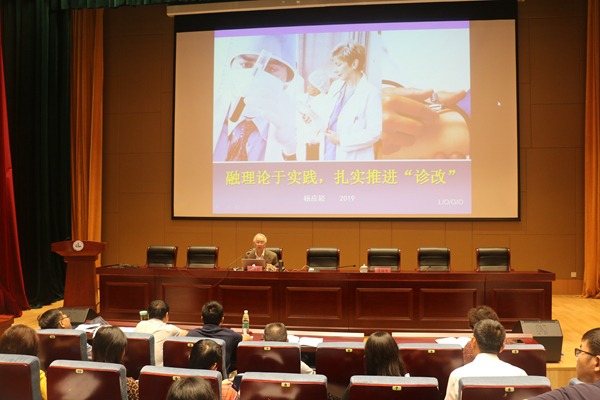 开班仪式后,全国诊改专委会主任杨应菘教授和常州工程职业技术学院原党委书记、全国诊改专委会副主任兼秘书长袁洪志教授分别作了《融理论与实践,扎实推进“诊改”》和《依据文件 聚焦体系 关注运行 引导方向——高职诊改试点院校<复核工作指引>与<专家工作手册>起草说明》的专题报告。