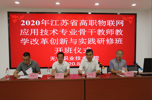8月24日, 2020年江苏高职物联网应用技术专业骨干教师教学改革创新与实践培训班在玛雅吧 图文中心C楼401顺利开班。校党委书记朱爱胜、继续教育学院院长崔平、物联网技术学院党总支书记周陆飞、院长蔡建军和来自省内20所高职院校近30位学员参加了开班仪式。