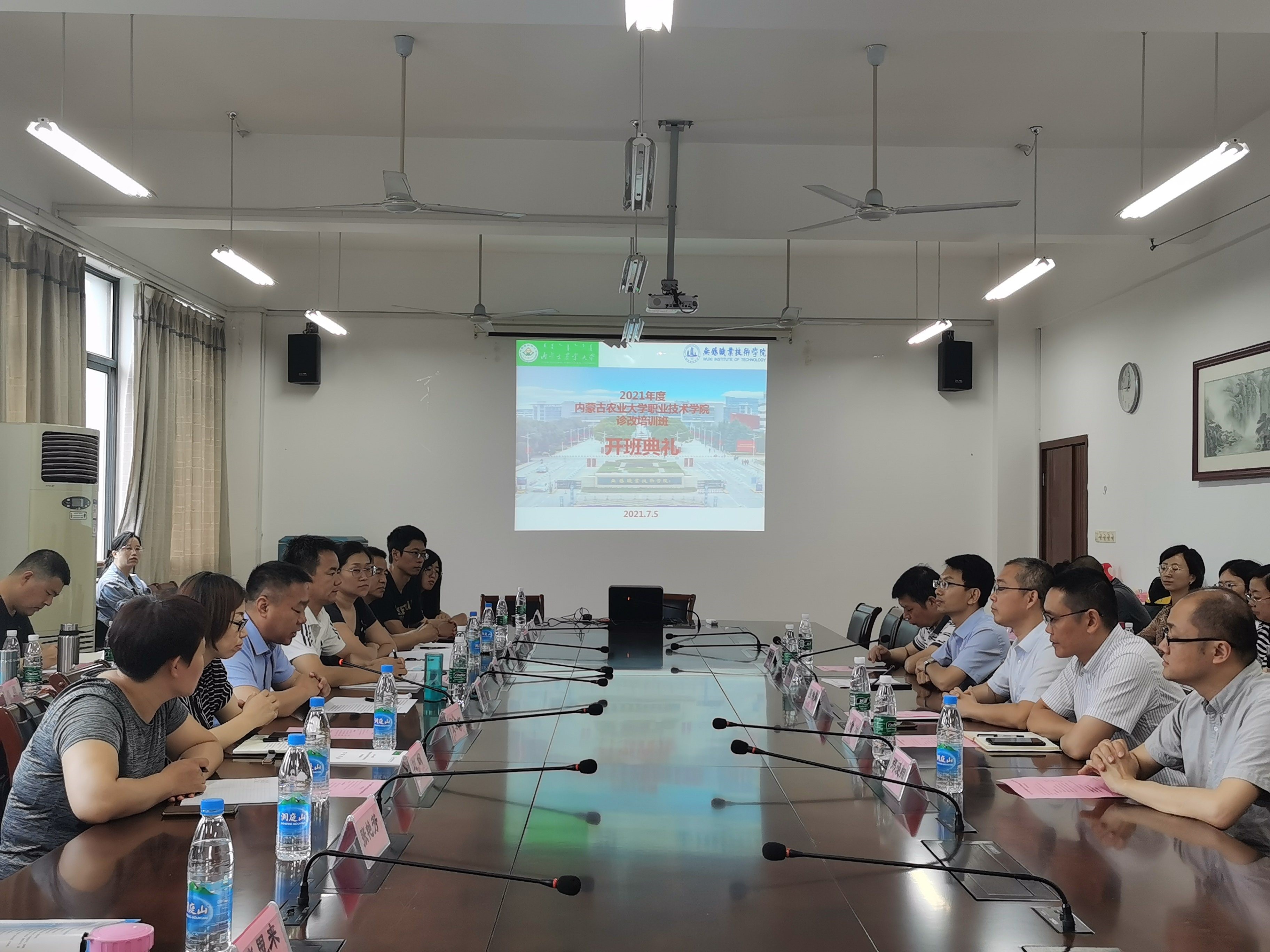 2021年7月5日上午,受内蒙古农业大学职业技术学院委托,玛雅吧 承办的“2021年度内蒙古农业大学职业技术学院诊改培训班”在我校顺利开班,开班仪式由管理学院党总支副书记宋瑞超主持。党委委员、副校长强伟纲、管理学院院长俞林、副院长郑爱翔、继续教育学院副院长曹秀中、项目管理人员,以及来自内蒙古农业大学职业技术学院各部门的33位学员参加了开班仪式。