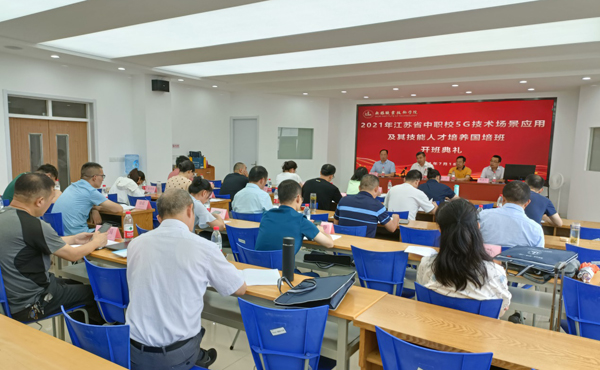 7月18日,2021年江苏省中职校5G技术场景应用及其技能人才培养国家级培训在我校图文信息中心C401报告厅举行开班仪式,来自江苏省中职院校的24名学员,我校党委书记朱爱胜及继续教育学院、物联网技术学院相关负责人、项目组老师参加了开班仪式。