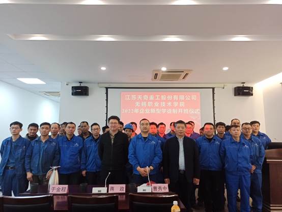 3月11日中午,我校与江苏天奇重工股份有限公司合作开展的企业新型学徒制模具工中级培训班在天奇重工举行,我校继续教育学院副院长曹秀中教授、机械技术学院副院长于金程副教授、江苏天奇重工股份有限公司副总经理蒋政、培训班企校导师和30名学员参加了开班仪式。