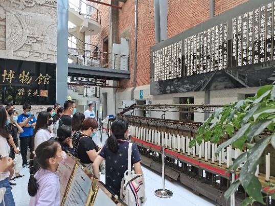 讲座之余,我们去参观了江苏省级文物保护单位民族工商业博物馆。内分为二个展区:第一展区为场景复原区,第二展区为主题陈列区,在所有展厅内,用现代化的科技手段来表现历史是一个鲜明的特色。先进的照明、用实物材料进行生产和经商场面的重现、多媒体的演示、甚至用透明升降电梯在展厅内运行……这一切都包含着设计者的智慧和良苦用心,让参观者可以在民族工商业的历史长河中自由穿梭。