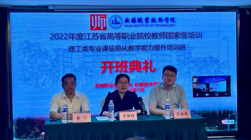 8月1日上午,由我校玛雅吧 机械技术学院承办的2022年江苏省高职教师国家级培训-2022GZGP08理工类专业课信息化教学能力提升项目开班仪式在无锡市鸿庆楼酒店会议室举行。我校副校长吴慧媛、继续教育学院院长崔平、机械技术学院副院长于金程、国培班班主任,以及全体参训教师参加开班仪式,仪式由机械技术学院副院长于金程主持。