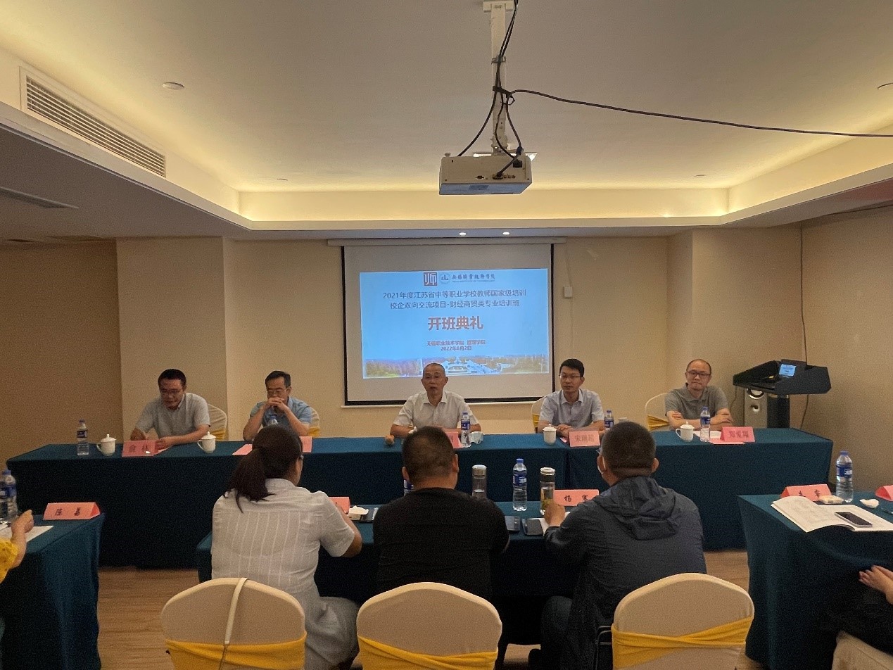 8月2日上午,江苏中职2021校企双向交流项目-财经商贸类专业国家级培训班在江南四季酒店二楼小会议室举行开班仪式,我校副校长强伟纲、继续教育学院院长崔平、管理学院相关负责人、项目管理人员,以及来自省内10余所中职校的20名学员参加了开班仪式。开班仪式由管理学院党总支书记宋瑞超主持。