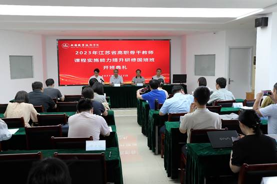 7月12日上午,由我校物联网学院承办的2023年江苏省高职骨干教师课程实施能力提升研修国家培训班在图文信息中心C-401室举行开班仪式。学校党委副书记、校长周桂瑾、继续教育学院院长崔平、物联网学院院长蔡建军及培训班全体学员共40余人参加开班仪式。开班式由物联网学院党总支书记谢欢主持。