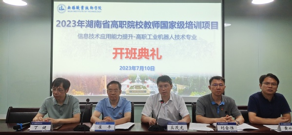 7月10日上午,2023年湖南省职业院校教师素质提高计划-“三教”改革研修-信息技术应用能力提升研修班的开班典礼在控制技术学院202会议室顺利进行。我校副校长奚茂龙、继续教育学院、控制技术学院相关负责人出席开班典礼,来自湖南省高职院校工业机器人专业的50位老师参加开班仪式。开班典礼由控制技术学院副院长丁健主持。