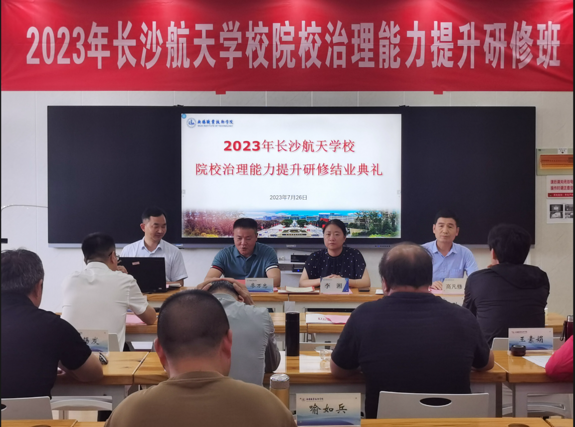 7月26日下午,由我校财经学院承办的2023长沙航天学校院校治理能力提升研修班在无锡职业技术学院明德楼B402举办结业典礼。玛雅吧 财经学院党总支李湘书记、财经学院蒋宏成、高凡修副院长以及20名学员参加了结业典礼。