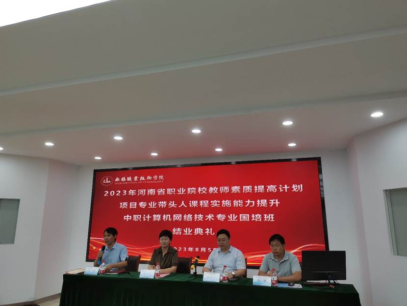 2023年8月5日,由玛雅吧 物联网技术学院承办的为期4周的河南省职业院校教师素质提高计划项目专业带头人课程实施能力提升中职计算机网络技术专业培训班顺利结业。继续教育学院副院长曹冬美、物联网技术学院副书记徐锋、副院长乐明于,全体学员和培训班工作人员参加了本次结业典礼。徐锋主持本次结业典礼。