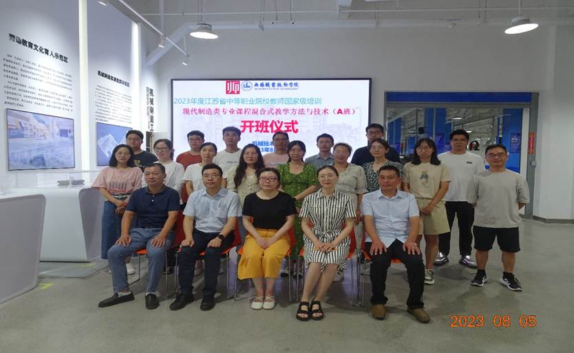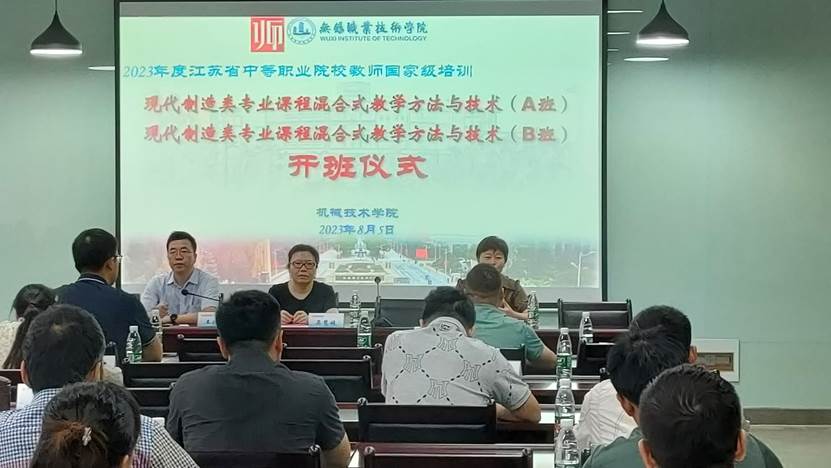 2023年8月5日上午,由我校机械技术学院承办的江苏省中职院校教师国家级培训“现代制造类专业课程混合式教学方法与技术”两个班同时在敏行楼二楼会议室开班。学校吴慧媛副校长、继续教育学院副院长曹冬美副院长、机械技术学院王振华书记、培训管理人员,以及来自省内中职院校的50位骨干教师学员参加了开班仪式。开班仪式由王振华书记主持。