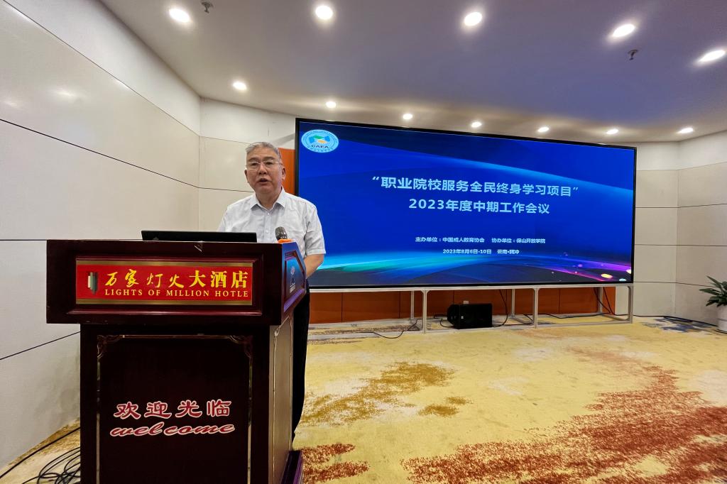为推进“职业院校服务全民终身学习项目”实验校工作顺利开展,中国成人教育协会于8月6日—10日在云南腾冲举办了“职业院校服务全民终身学习项目”2023年度中期工作会议。与来自全国各地的职业院校、社区院校以及相关教育部门等项目成员单位100名余名代表参加会议。会议由中国成协项目组负责人李荣华主持,中国成人教育协会副会长兼秘书长赵跃进到场并讲话。中国教学科学研究院职业教育与继续教育研究所所长王新波教授做了《职业教育与继续教育协同发展》的主旨报告。