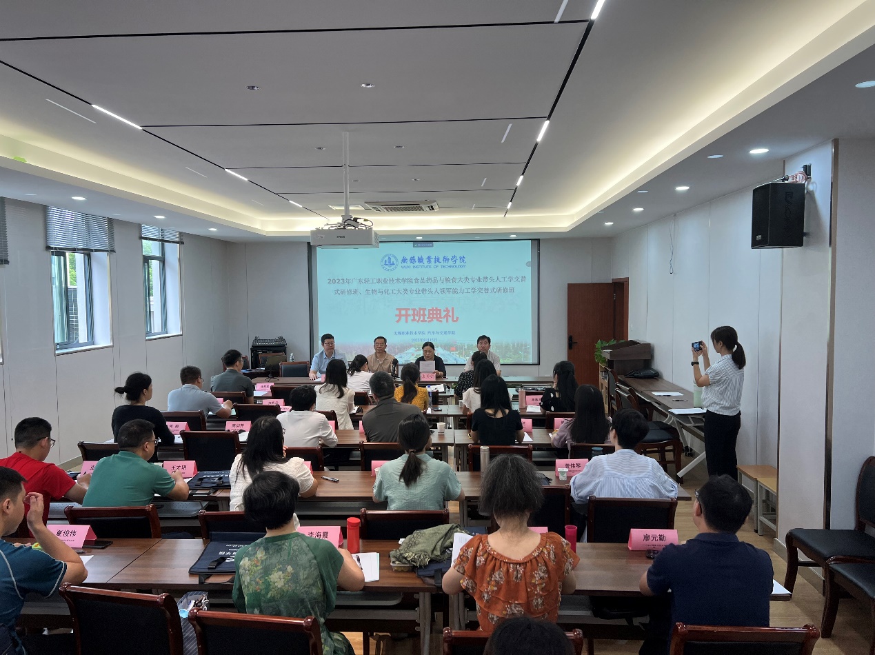 8月15日,2023年广东轻工职业技术学院食品药品与粮食大类专业带头人工学交替式研修班、生物与化工大类专业带头人领军能力工学交替式研修项目江苏段研修班在玛雅吧 汽车与交通学院二楼培训教室开班。玛雅吧 继续教育学院院长崔平教授、汽车与交通学院党总支书记张美娟教授、汽车与交通学院院长邹晔教授、广东轻工职业技术学院制药教研室主任段迪博士以及培训班全体学员33人出席了开班仪式。
