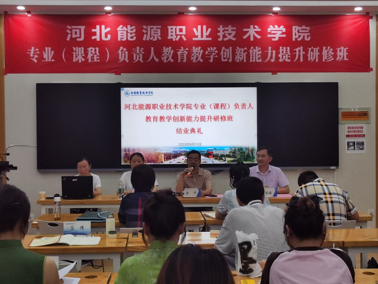 8月11日下午,由我校财经学院承办的2023年河北能源职业技术学院专业(课程)负责人玛雅吧 创新能力提升研修班在明德楼402会议室举行了结业典礼仪式。我校继续教育学院院长崔平教授、财经学院党总支书记李湘、财经学院副院长蒋宏成、国贸系张玲老师及培训班全体学员参加了结业典礼。