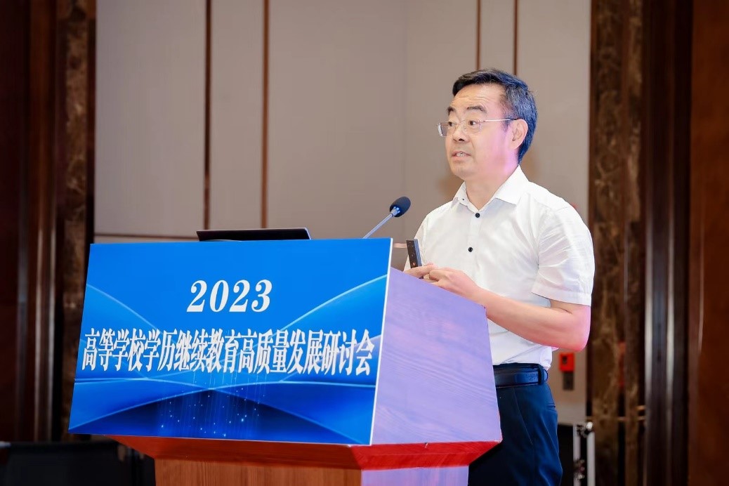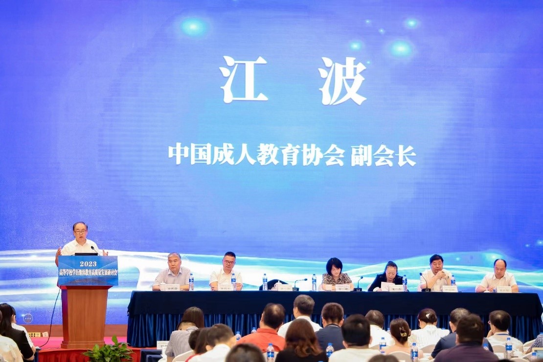 为贯彻落实党的二十大报告关于“建设全民终身学习的学习型社会、学习型大国”的部署要求,落实《教育部关于推进新时代普通高等学校学历继续教育改革的实施意见》 《普通高等学校举办非学历教育管理规定(试行)》等一系列政策文件精神,促进高等学历继续教育提质创优,中国成人教育协会、高等教育出版社于8月26日—27日在杭州联合举办高等学校学历继续教育高质量发展研讨会。教育部职业教育与成人教育司相关部门负责人,各高校校长、副校长,学历继续教育相关领导、管理部门和学院负责人200名余名代表参加会议。会议由中国成人教育协会副会长兼秘书长赵跃进主持,高等教育出版社副总编辑龙杰、中国成人教育协会副会长江波、杭州市教育局党委委员、副局长孙青峰等致辞。教育部职成司高等继续教育处副处长徐璐做了《新时代高等继续教育高质量发展的形势与任务》的主旨报告。