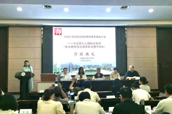 8月7日上午,由我校财经学院承办的2024年江苏省高职院校教师国家级培训项目——职业教育发达国家职业教学法培训班在国际交流中心二楼报告厅举行开班仪式。副校长吴慧媛、继续教育与培训部副主任曹冬美、德籍职业教育培训专家Matthias Kreuzer、财经学院院长赵爽及来自省内30余所高职校的40名学员参加了开班仪式。