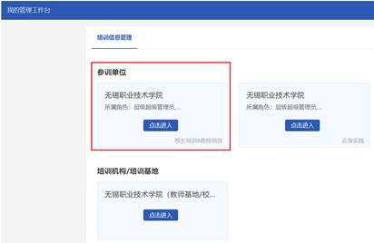 第二步:进入“我管理的工作台”,从“参训单位”端口进入