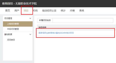 第三步:进入“项目页面”点击“国家级职业教育培训基地2024项目”
