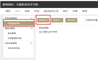第三步:在系统中添加“参训学员”,在“用户”页面中的“学员信息列表”中选择“新增学员”添加。如系统中已有该学员信息,此步忽略。