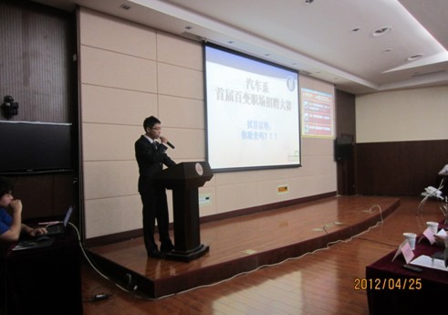 本次参赛选手通过自我介绍、职场问答、情景演练等环节来充分展示自己的职业潜能;最后,评委根据选手的现场表现对其打分,最终评选出汽车51131班戈奔获得一等奖;汽修51071班孙威威、汽修51032班严浩获得二等奖;汽保51033班胡樱才等三名同学获得三等奖。各位参赛嘉宾对参赛选手做出了精彩点评,整场活动反响强烈,在场同学们感到受益颇丰,博世汽车专业维修网络协会联盟毛卫都副会长、无锡德尔投资集团有限公司人力资源部陆亚芬部长当场向职场新人抛出了橄榄枝,张家港正大富通汽配连锁有限公司唐奉生先生拟为我系学生提供了38个暑假实习岗位;最后,沈明南书记对此次大赛进行了总结和点评,对90后大学生们的良好素质表示肯定,同时对同学们提出了殷切希望和美好祝愿。
